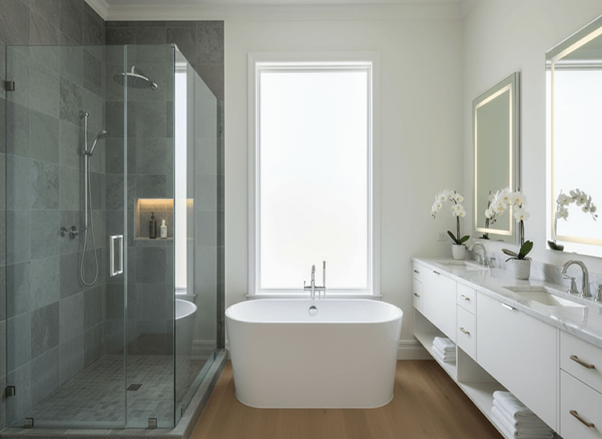 • Walk-In Showers: Say goodbye to clunky tub-shower combos. We design spacious, frameless glass showers with rainfall heads and custom tile work that instantly modernize your space.